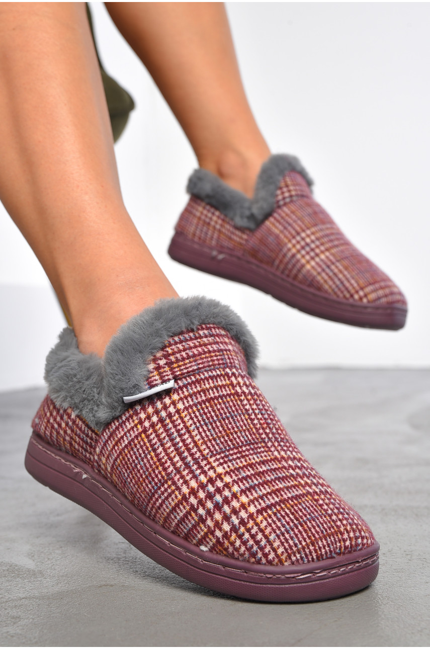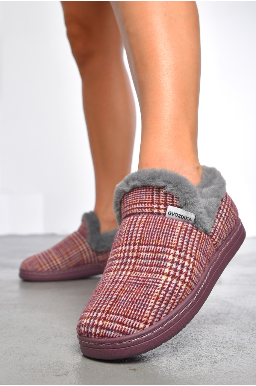 Тапочки домашние чуни женские бордового цвета D-40 188994