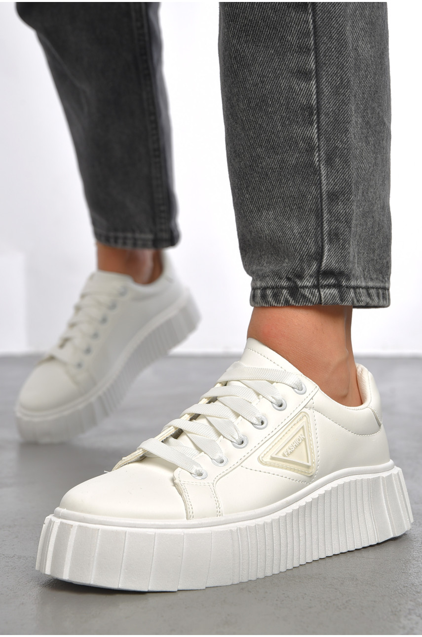 Кроссовки женские белого цвета на шнуровке 016-9 187540