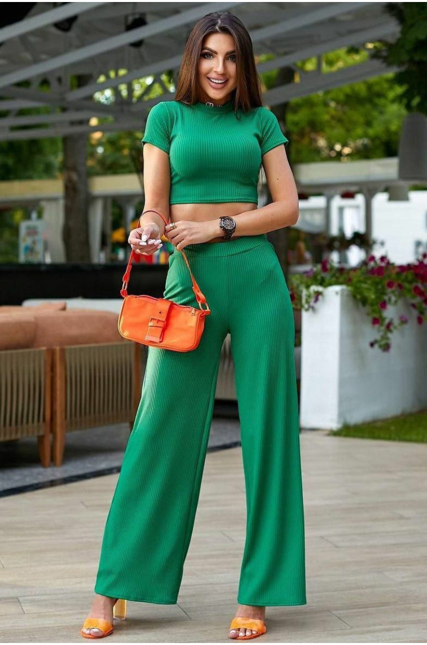 Костюм женский в рубчик зеленого цвета 179524