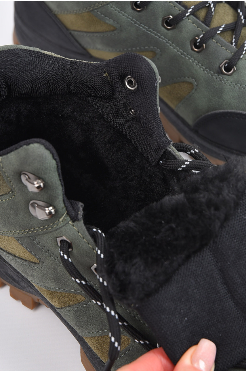 Черевики чоловічі зимові на хутрі темно-зеленого кольору YB10041-5 165522C