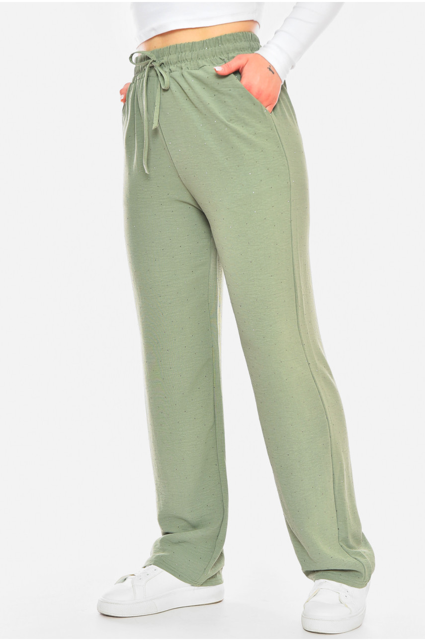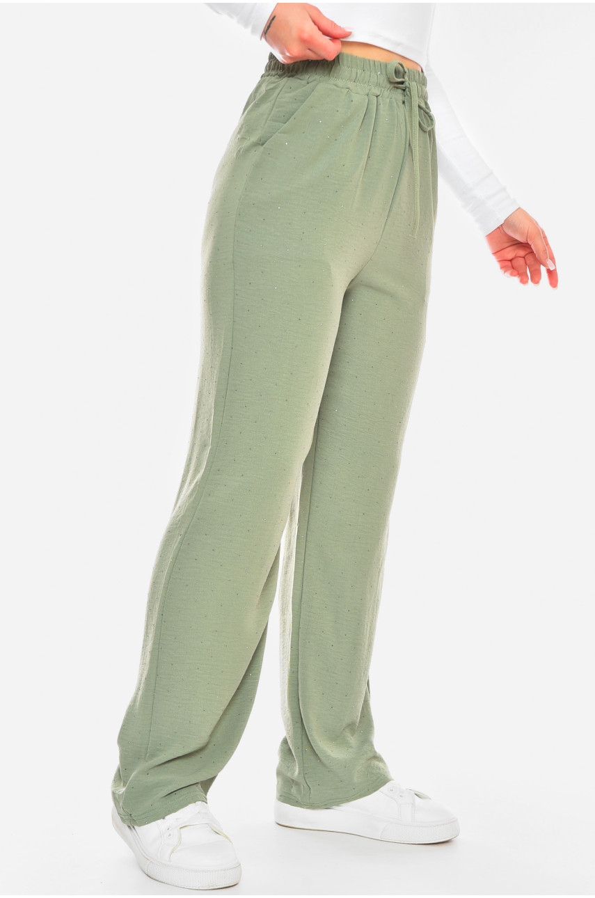 Штани жіночі зеленого кольору зі стразами 9813-1 199939