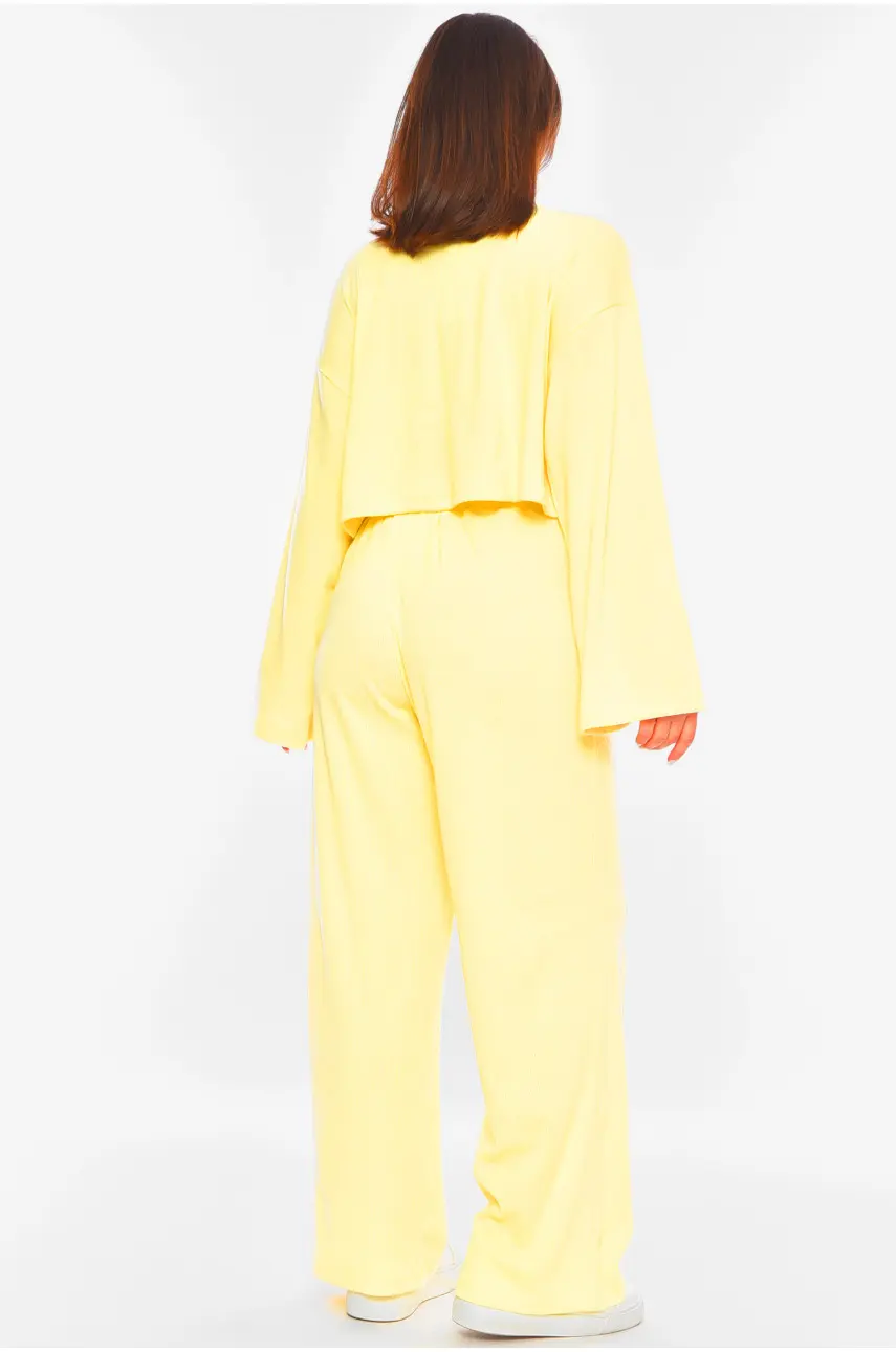 | Назва | Костюм жіночий однотонний у рубчик світло-жовтого кольору 2006 200906 |