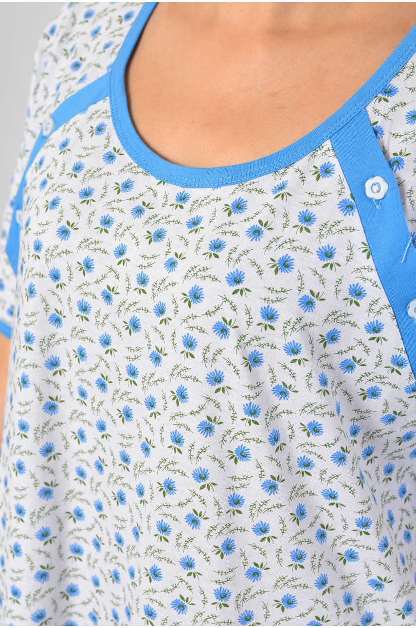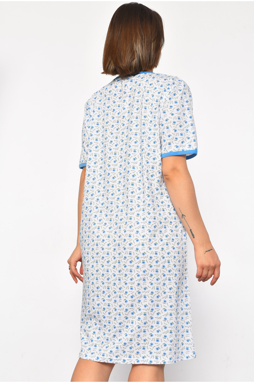 Нічна сорочка напівбатальна жіноча білого кольору з квітковим принтом 184 186975